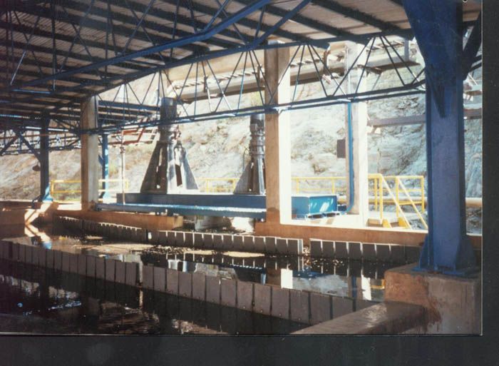 Ø For Dexing Copper Mine Project of Jiangxi Copper Corporation (JCC), heap leaching is applied for copper-bearing waste rocks. It is a project using "copper-bearing waste rock heap leaching - extraction-electrowinning plants" process. It is the first plant in China to adopt bio-leaching process for primary sulfide waste rock, with an annual output of 2,000t/a Grade A cathode copper. In the project, the large-sized extractor (with design solution flow rate at 320m3/h) and mixing chamber of extractor in double stirring mode are used. The super large permanent cathode sheet technology and other technologies have been awarded with the second prize of Science and Technology Progress Prize by State Non-Ferrous Metal Industry Bureau. The project was completed and put into production in 1997.